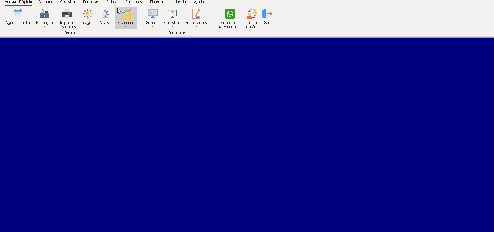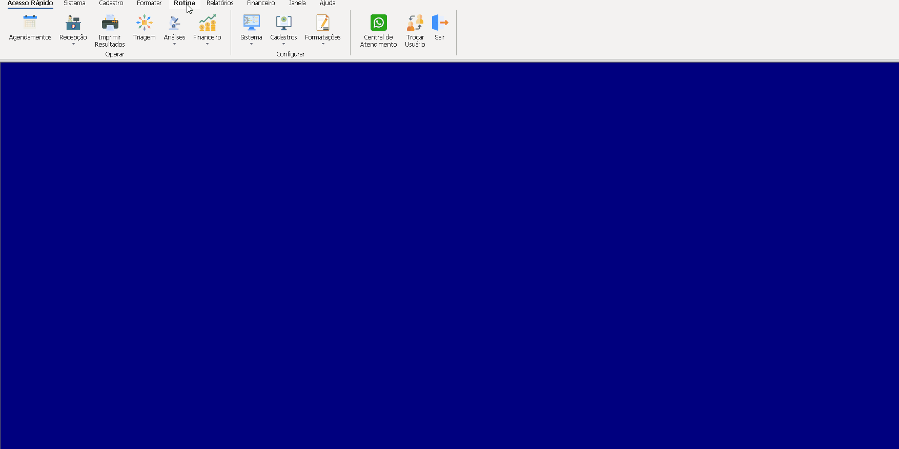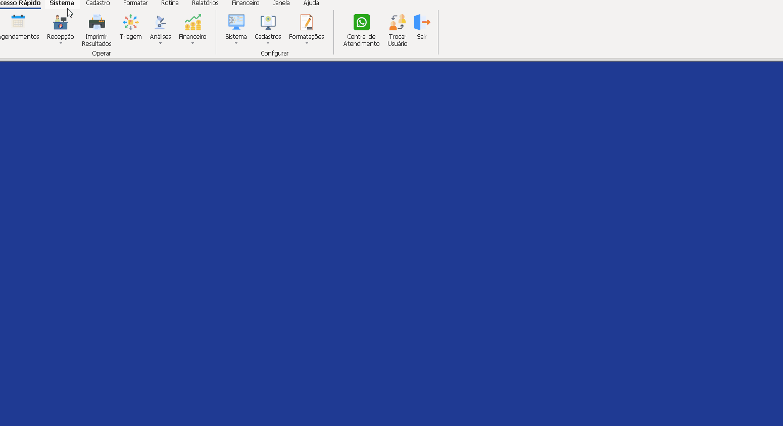 Para mudar o plano de fundo do LabClinic, o processo é simples e rápido. Para isso, devemos ir em SISTEMA> Papel de Parede. Feito isso, uma nova janela irá abrir onde irá constar o plano de fundo desejado ao critério do usuário, o qual poderá variar. Assim que concluído, basta procurar a imagem e clicar em Abrir e a imagem escolhida irá aparecer no menu principal do LabClinic.