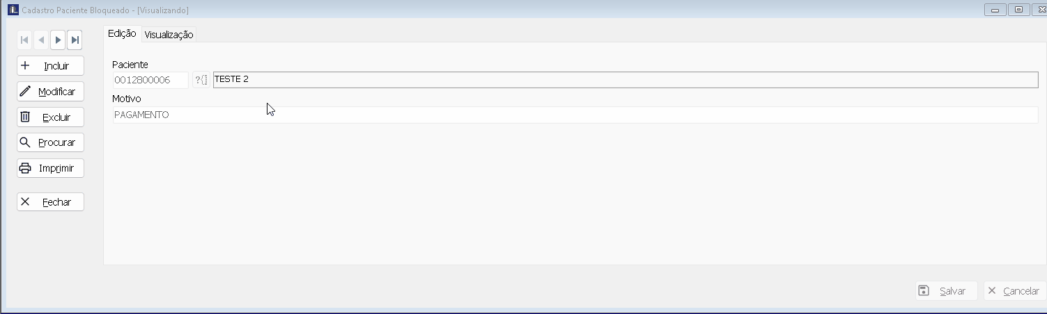 Assim que salvo o registro, toda vez que algum usuário for editar alguma coisa no determinado paciente, a mensagem do motivo irá aparecer.