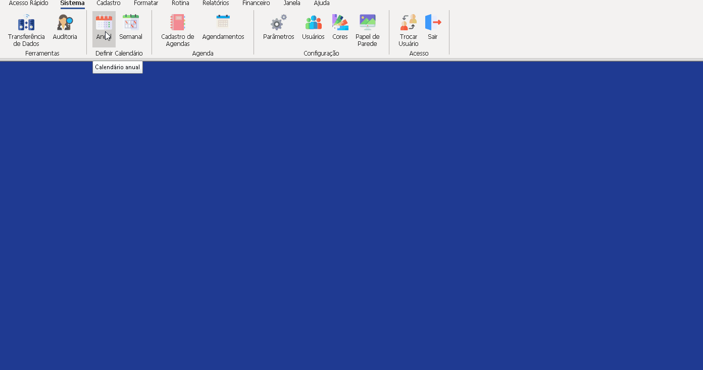 Para configurar o calendário específico de cada médico, acesse o calendário geral em Arquivo, Calendário: