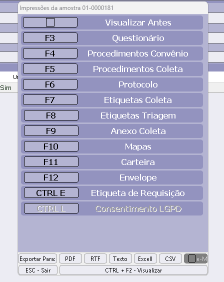 - Carteira: Tecle F11 para emissão da carteira do exame.