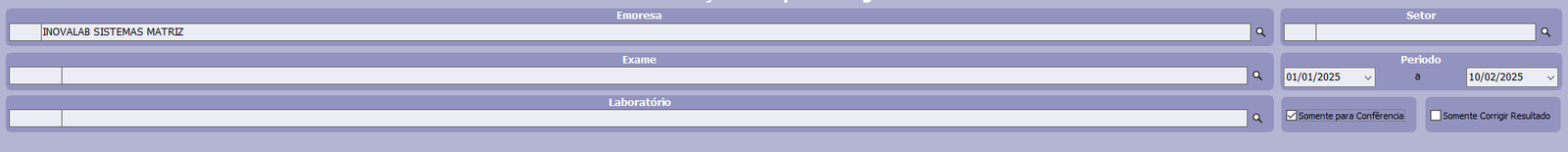 Esta opção permite lançar e conferir os resultados dos exames fazendo uma seleção por filtragem.