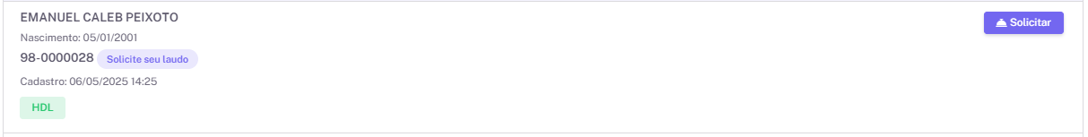Com esta nova funcionalidade, você pode solicitar o laudo de exames antigos com apenas um clique — ideal para casos em que o resultado já foi liberado, mas o laudo não está acessível online.